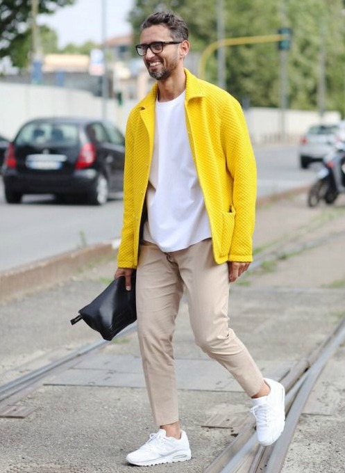 Trocando em miúdos, essa onda nada mais é do que uma boa mistura entre os estilos esportivo (sim, as peças que a gente usa na academia mesmo) e casual, que vem tomando conta há algum tempo da paisagem de fim de semana. Aqui vale combinar o seu bom tênis branco com calças “jogger” (uma espécie de upgrade da calça de moletom, com modelagem mais justa e elástico na barra), uma camiseta e uma jaqueta bomber. Equilibrar peças esportivas com clássicos resulta em uma aparência bem legal.