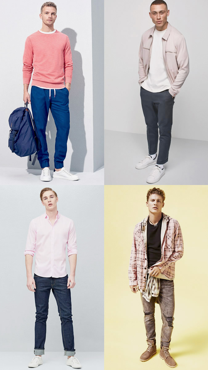 Para além do clássica combinação cinza + branco ou cinza + preto, há outras opções como vermelho, amarelo, rosa, azul marinho e verde.