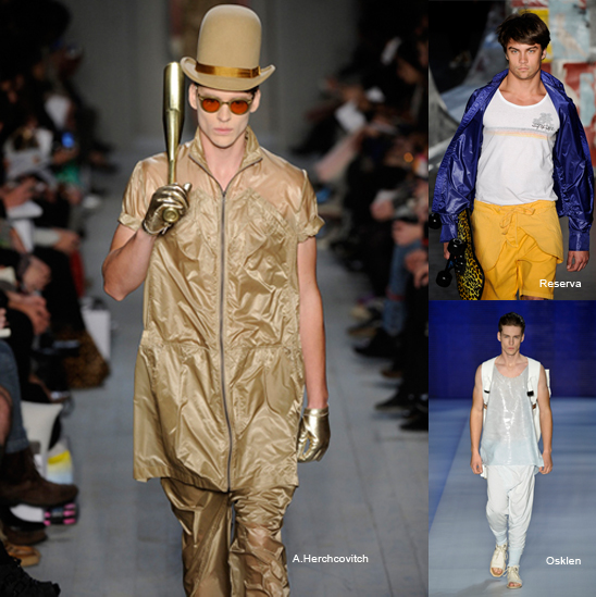 Aos poucos o jogo do revela x esconde chega às coleções masculinas. O corpo masculino ensaia timidamente mostrar-se, mas em vez disso, aproveita tricôs levíssimos para jogar com as sobreposições, que prometem salvar as noites de quem estica direito do trabalho para a balada.